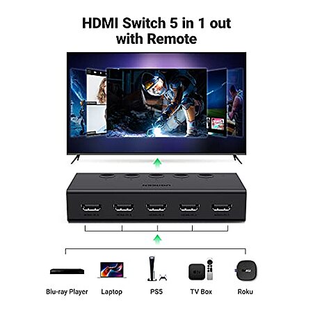 UGREEN 5 in 1 Out HDMI Switch 4K@60Hz $25.99 & HiTune Wireless Earbuds Bluetooth 5.0 $14.99