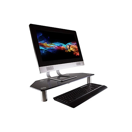 Monoprice Workstream Corner Multimedia Desktop Monitor Black Glass Stand