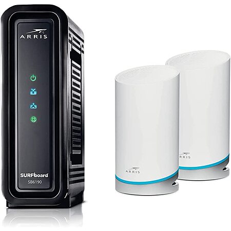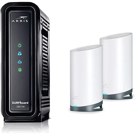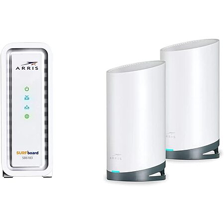 Arris Surfboard Cable Modem + Mesh Wi-fi Combo Bundles: SB6183 Modem (400 Mbps) + W121 AS6600 WiFi 6 Tri-Band Router System (5,500 sqft) $191 & more + Free Shipping w/ Prime