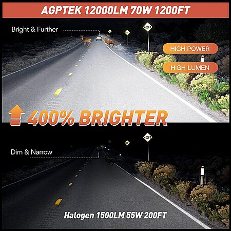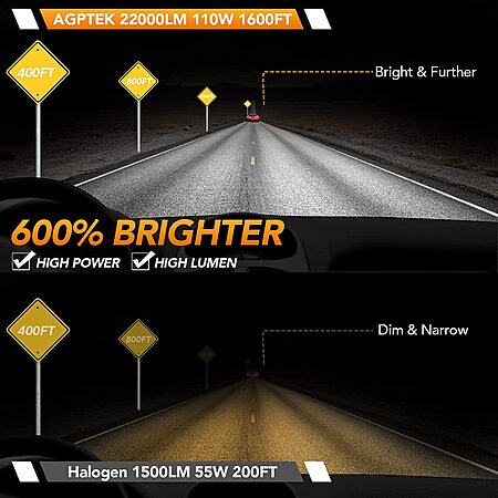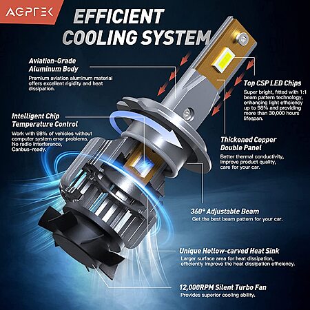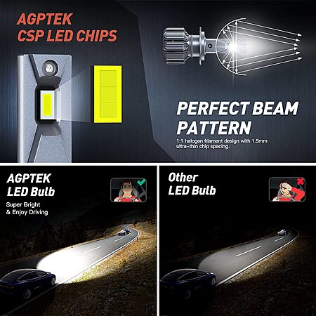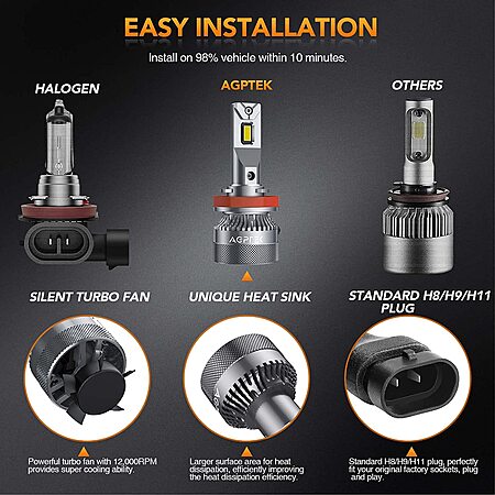 AGPTEK LED Headlight Bulbs: H7 LED Headlight Bulbs (70W 12000 Lumen) $13.05, H11/H9/H8 LED Headlight Bulbs (110W, 22000 Lumen) $20 & More + Free Shipping