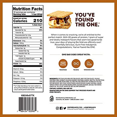 Model: ONE Protein Bars, Smores, Gluten Free Protein Bars with 20g Protein and only 1g Sugar, Guilt-Free Snacking for High Protein Diets, 2.12 oz , 12 Count (Pack of 1)
