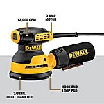DEWALT 20V MAX Orbital Sander Kit, 5 inch, 3 amp, Corded, 12,000 OPM (DWE6421K) $59
