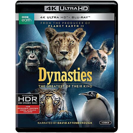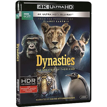 Amazon has BBC Earth: Dynasties (4K UHD + Blu-ray) on sale for $11.99. Shipping is free with Prime or if you spend $25 or more.