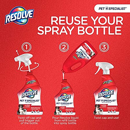 Model: Resolve Pet Specialist Carpet Cleaner, Stain Remover and Odor eliminator trigger and refill, Floor and Upholstery Cleaner, 92 fl oz (32fl oz trigger and 60 fl oz refill bottle)