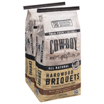 • Cowboy Hardwood Briquets are all natural containing 95% hardwood charcoal and 5% vegetable binder