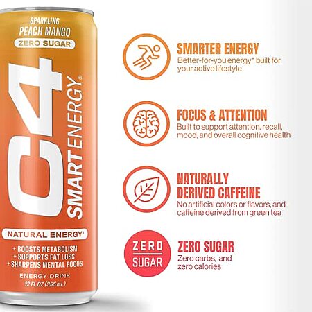 12-Pack 12-Oz C4 Smart Energy Drink (Peach Mango Nectar)