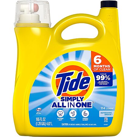 Tide & Persil Laundry Detergents & Tide Fabric Spray $15 off $50+: 165-Oz Tide Simply (Refreshing Breeze) 4 for $33.40 ($8.35 each) & More w/ S&S + Free Shipping