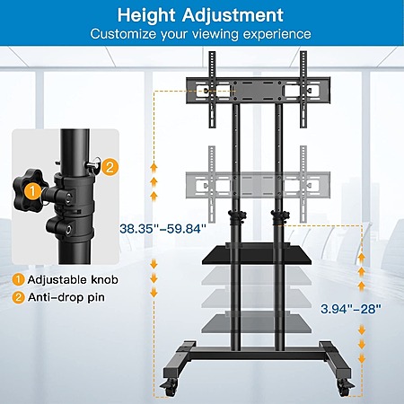 Mobile TV Stand on Wheels w/ Tilt (For 32-70" TVs) $70 + Free Shipping