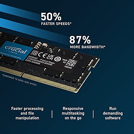 Crucial RAM 64GB Kit (2x32GB) DDR5 4800 MHz CL40 Laptop Memory - Amazon.com / BHPhotoVideo.com / Crucial.com $210.99
