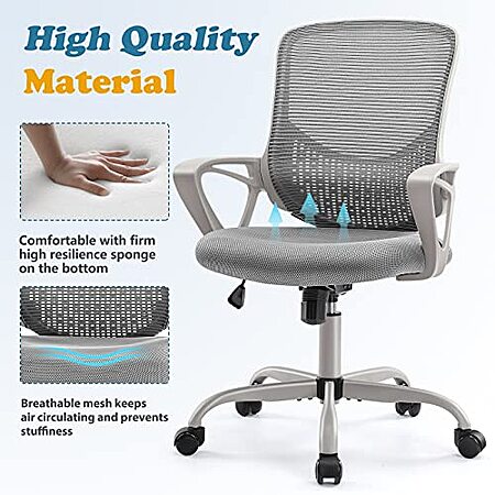 Amazon[amazon.com] has Ergonomic Rolling Office Chair Mesh Back w/ Fixed Armrest & Soft Foam Seat (Grey) on sale for $44.08. Shipping is free.