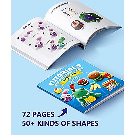 72-page Tutorial Idea Book: Simple and easy steps for kids. Including over 50 kinds of common shapes, foods, and animals that benefit for color recognition, mixing and matching, as well as learning how to paint. Tutorials allow kids to start from imitation, until they can create their own work independently. Popular air dry clay as gifts for girls, crafts for girls, boys toys.