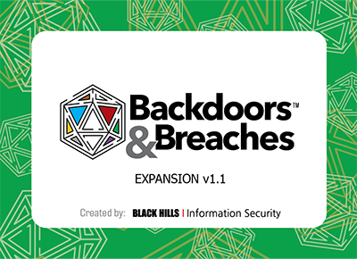 This is Backdoors & Breaches, an Incident Response Card Game, from Black Hills Information Security and Active Countermeasures. Backdoors & Breaches contains 52 unique cards to help you conduct incident response tabletop exercises and learn attack tactics, tools, and methods.