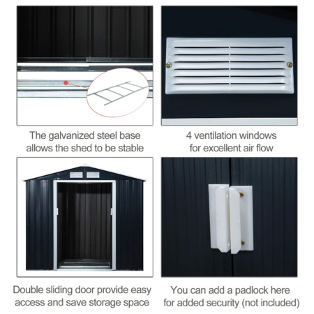 7'x4' Outsunny Metal Outdoor Shed Organizer & Garden Storage w/ 4 Vents & 2 Easy Sliding Doors (Dark Grey) $286 + Free Shipping