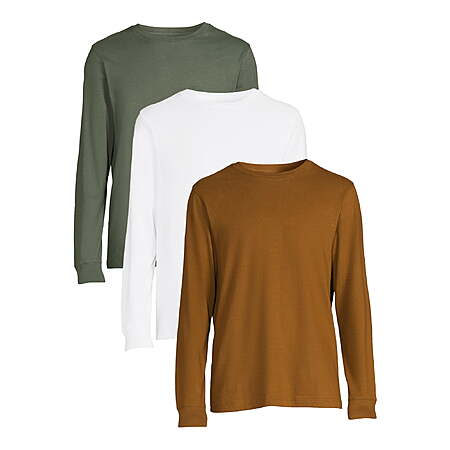 3-Pack George Men's Crewneck Long Sleeve Shirts (Various Sizes & Colors)