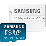 128GB Samsung Evo Select UHS-1 A2/V30 microSDXC Memory Card w/ Adapter $12.50 + Free Shipping w/ Prime or on $25+