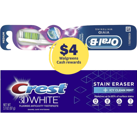 3.1-oz Crest 3D White Toothpaste + Oral-B Toothbrush (Soft) + $4 Walgreens Cash