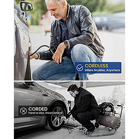 If it has battery capacity for 30 minutes of operation, I guess that means you barely get two car tires out of it before you have to recharge, under the best conditions.