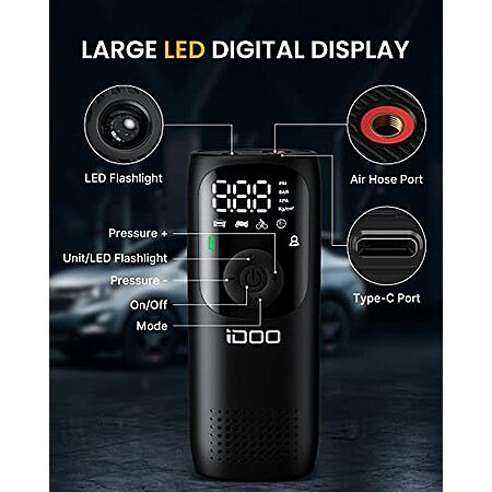 Easy Operation Cordless Tire Inflator Portable Air Compressor iDOO Bike Pump.