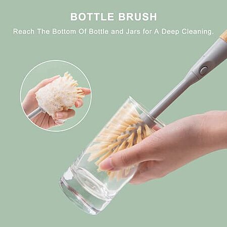 VERSATILE BRUSHES: Dish brush heads with scraper can easily scrub away food particles on the dish and bowl without scratching the surface. Round brush heads is suitable for cleaning the bottle and cups. Corner brush heads is good for scrub the stains and dirt between the gap. Compressed scrub sponge is safe and can be used for cleaning dishes and plates.