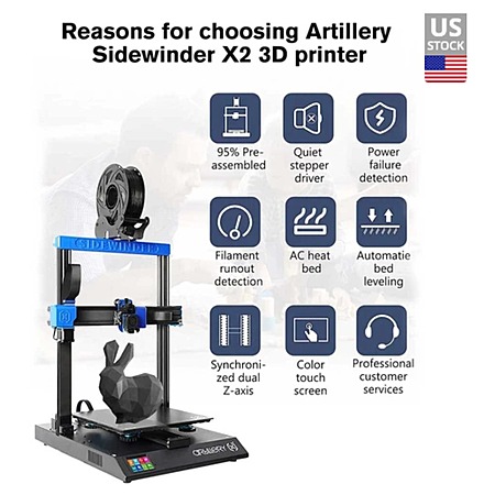 Artillery Sidewinder X2 3D Printer w/ Titan Direct Drive Extruder (300x300x400mm)
