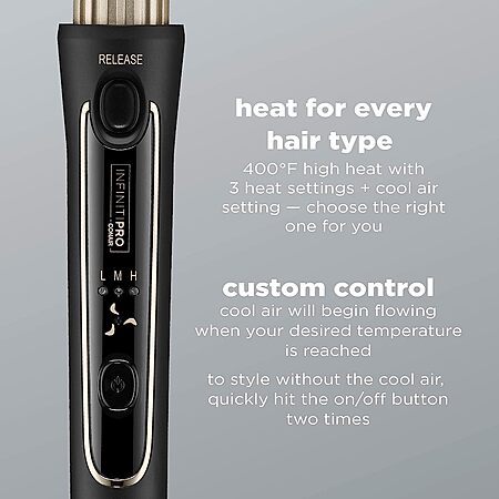 • 1.5" (36mm) Barrel Diameter and 1" Inner Plates: Create loose curls with the Cool Air Styler from INFINITIPRO BY CONAIR. The unique cool air system allows cool air to flow outside of barrel to immediately set your curl and help protect your hair.