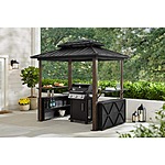 Create a mini outdoor kitchen with this Hampton Bay Hollybrook grill gazebo. A brown finish and detailed accents create a sleek, modern look for your backyard, and the durable steel construction stands up to the elements. This gazebo has multiple shelves and counters, providing ample space for all your grilling essentials. The sloped hardtop roof provides shelter from the sun and rain so you can keep cooking for guests. With generous dimensions, this Hampton Bay Hollybrook grill gazebo offers ample space to accommodate your gas or electric grill.