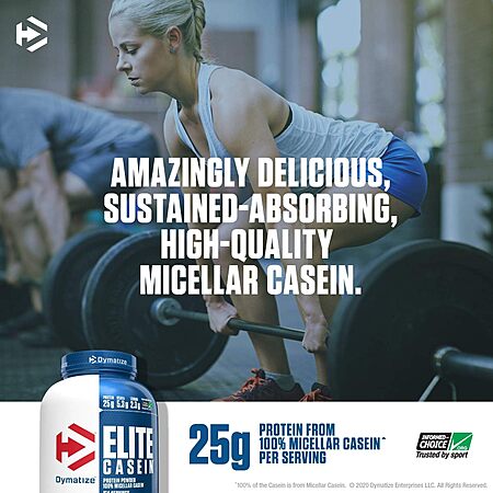 Dymatize Elite Casein Protein Powder, Slow Absorbing with Muscle Building Amino Acids, 100% Micellar Casein, 25 g Protein - $24 w/ 40% off first subcribe and save order at Amazon