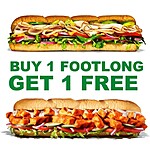 Select Subway Restaurants [Store Locator] are offering Buy One Footlong Sub, Get One Footlong Sub Free when you add a Quantity of 2 subs to your cart and apply promo code BOGOFTL for ordering online or via the Subway Mobile App (iOS or Android).