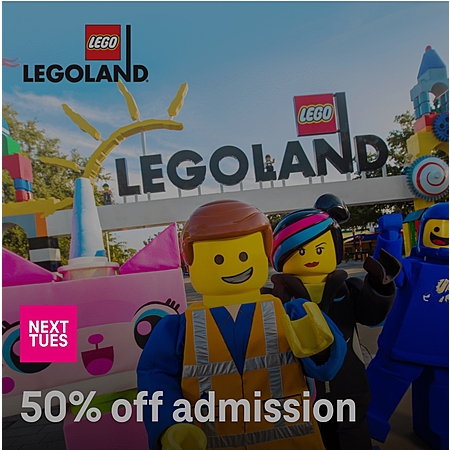 Kickstart some family fun with 50% off admission to LEGOLANDe Resorts in California, Florida and New York, LEGOLAND Discovery Centers select SEA LIFE Aquariums and Madame Tussauds!