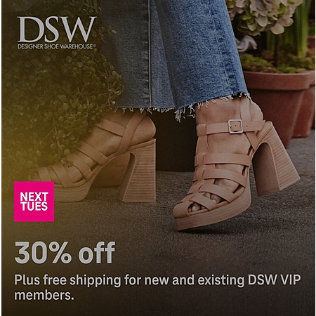 Step into spring styles with 30% off at DSW-plus, new and existing DSW VIP members score free standard shipping.