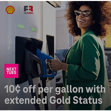 Save and redeem in the T-Mobile Tuesdays app by April 4th, 2023, at 11:59 p.m. ET and add to Fuel Rewards account by April 7th, 2023, at 11:59 p.m. ET to receive a Fuel Rewards code worth $0.10 off per gallor for up to 20 gallons to use towards one tank of Shell fuel, ARV: up to $2.00. Not available in Puerto Rico or U.S. Virgin Islands. Limit 1 code/Fuel Rewards member. Must have or create a Fuel Rewards account for free by downloading the Fuel Rewards app using the link provided and completing the sign-up process. Redeem your Fuel Rewards savings with your Fuel Rewards card or member ID (Alt ID) at participating Shell or other select participating fuel stations by April 7th, 2023, at 11:59 p.m. ET.