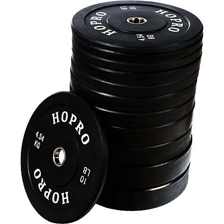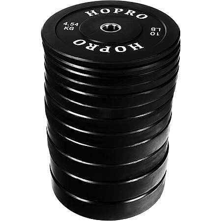 370-Lb BalanceFrom HOPRO Olympic Bumper Plate Weight Plate w/ Steel Hub