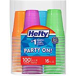100-Count Hefty 16-Oz Party On Plastic Cups (Assorted Colors)