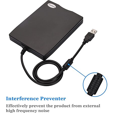 RAAYOO USB Floppy Disk Reader Drive, 3.5" External Portable 1.44 MB FDD Diskette Drive for Windows 7/8/2000/XP/Vista PC Laptop Desktop Notebook Computer Plug and Play No Extra Driversโ Black