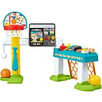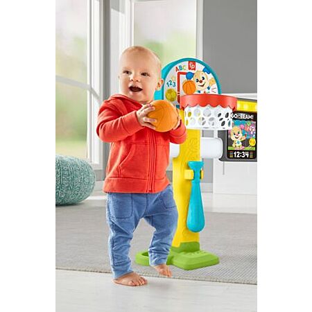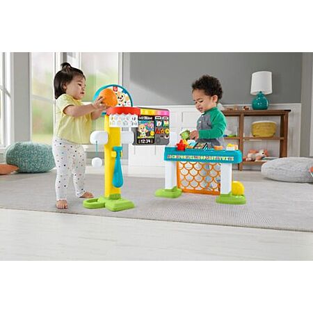 Description:- Little athletes can practice all their all-star moves with the Laugh & Learn 4-in-1 Game Experience interactive play set from Fisher-Price. This pretend sports arena lets toddlers shoot basketball hoops, score soccer goals, and hit homeruns with the baseball bat, all in one exciting activity center. Plus, in between "games," tiny sports fans can visit the pretend concession stand with removable food pieces for fun role-play or the interactive scoreboard with 100+ songs, sounds and phrases. And with Smart Stages technology, you can switch up the learning level as your mini-MVP grows.