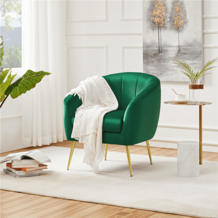 Alden Design Barrel Velvet Accent Chair w/ Gold Metal Legs (green, gray)