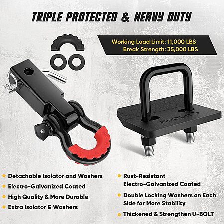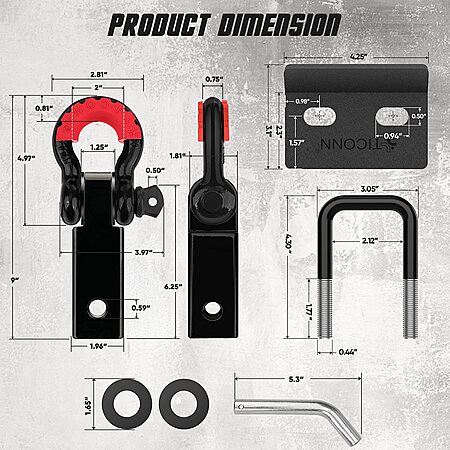 2" Ticonn Heavy Duty Shackle Hitch Receiver: w/ D-Ring Shackle $21, w/ Hitch Tightener $24 + Free Shipping