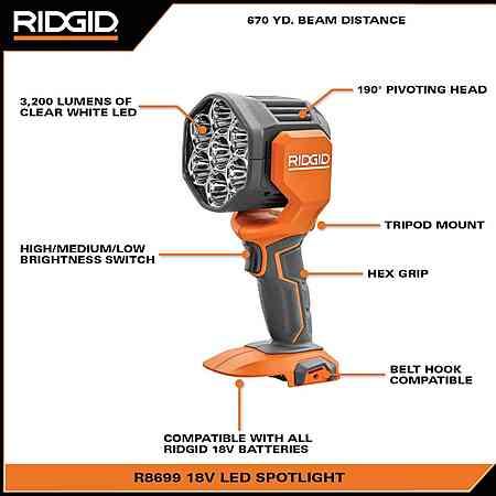 Ridgid Spotlight with (2) 4.0ah batteries, charger and bag - $129.00 at Home Depot