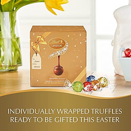 Model: Lindt LINDOR Assorted Chocolate Truffles 90 Count Easter Candy Gift Box, Chocolate Candy with Smooth, Melting Truffle Center, 38.4 oz. Box