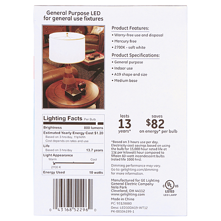 GE Soft White A19 General Purpose 10-Watt LED Light Bulb (60W Equivalent), Dimmable, Medium Base, 12-Pack - Walmart.com $5 YMMV