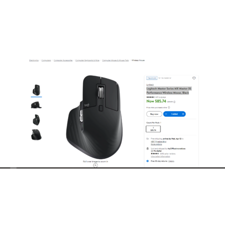 Logitech Master Series MX Master 3S Performance Wireless Mouse Black $85.74