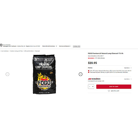 FOGO Premium All Natural Lump Charcoal 17.6 lb $20.95 - YMMV