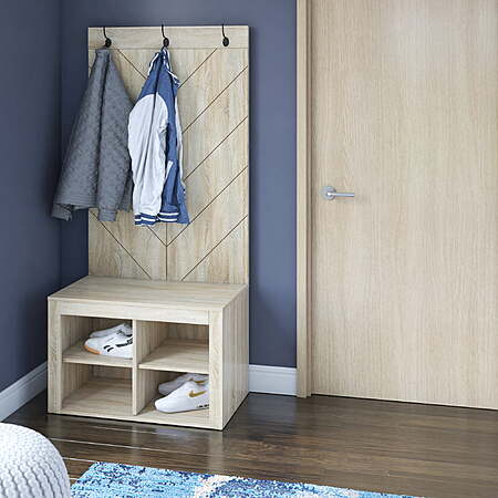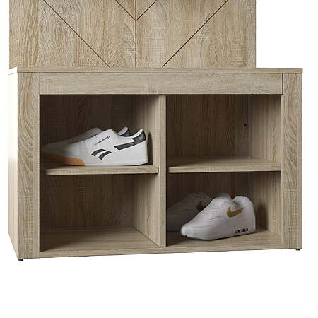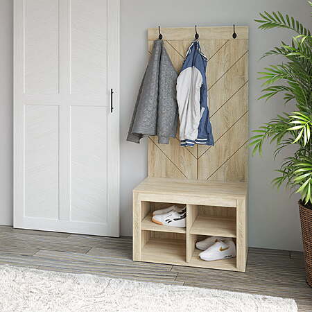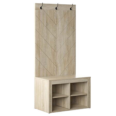 Twin Star Home Chevron Design Hall Tree w/ Storage Cubbies & Coat Hooks (Bishop Oak) on sale for