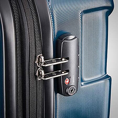 FOUR, MULTI-DIRECTIONAL OVERSIZED SPINNER WHEELS for effortless mobility, re-engineered lightweight.FULL-ZIP INTERIOR DIVIDER and cross straps for increased packing organization.SIDE-MOUNTED TSA LOCKs act to deter theft, ensuring that only you or a TSA agent have easy access to your belongings when traveling.1.5" EXPANSION to allow you to pack more items and compression keeps clothing neatly pressed.PUSH-BUTTON locking handles provides easy maneuverability when extended out from the suitcase, and stores neatly inside when not in use