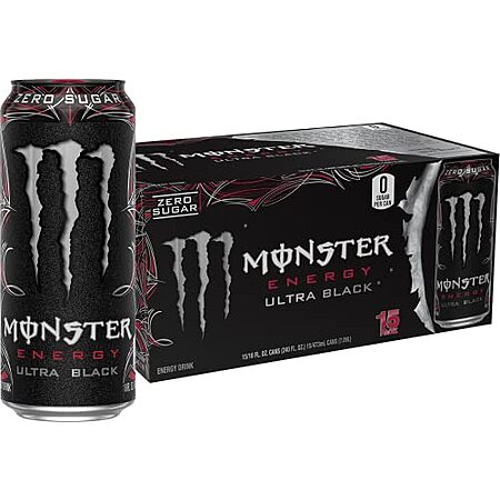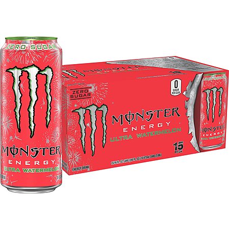 15-Pk 16-Oz Monster Energy Sugar Free Energy Drinks (Ultra Black or Watermelon)