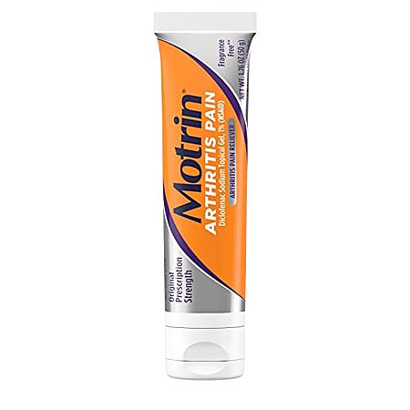 - 1.76- ounce tube of Motrin Arthritis Pain Relief Diclofenac Sodium Gel, a gel made with 1% diclofenac sodium, to relieve pain due to arthritis in the hands, wrists, elbows, knees, feet and ankles