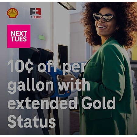 Shell: 10 cents off per gallon w extended Gold Status
