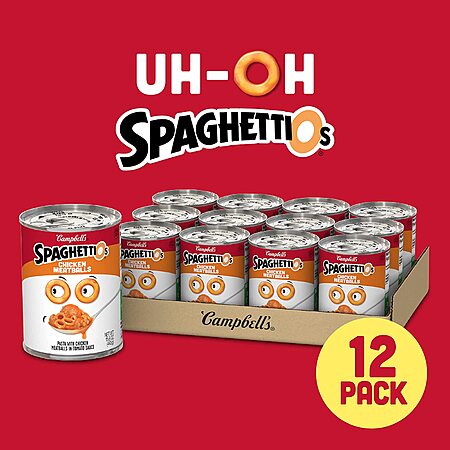 12-Pack 15.6-Oz SpaghettiOs Canned Pasta w/ Chicken Meatballs $12 + Free Shipping w/ Prime or on orders over $25