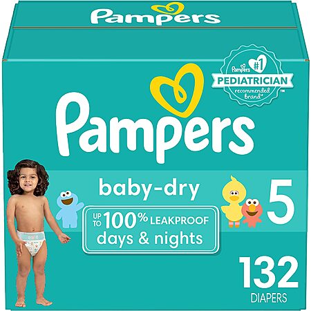 Pampers Baby Dry Diapers:150-Count (size 4) $33.90, 132-Count (size 5)