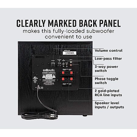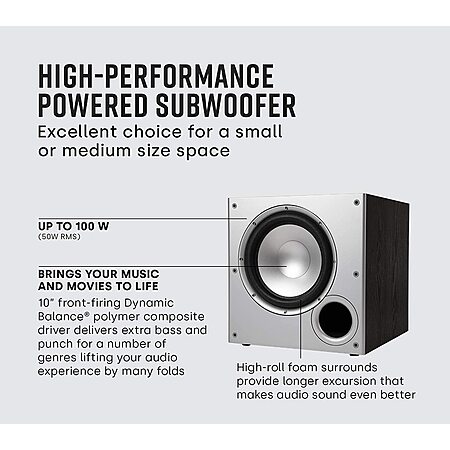Model: Polk Audio PSW10 10" Powered Subwoofer - Power Port Technology, Up to 100 Watts, Big Bass in Compact Design, Easy Setup with Home Theater Systems Black